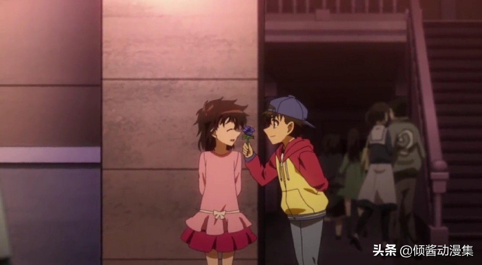 小时候的黑羽快斗,曾经在一座钟塔下,送过红玫瑰花给中森青子。