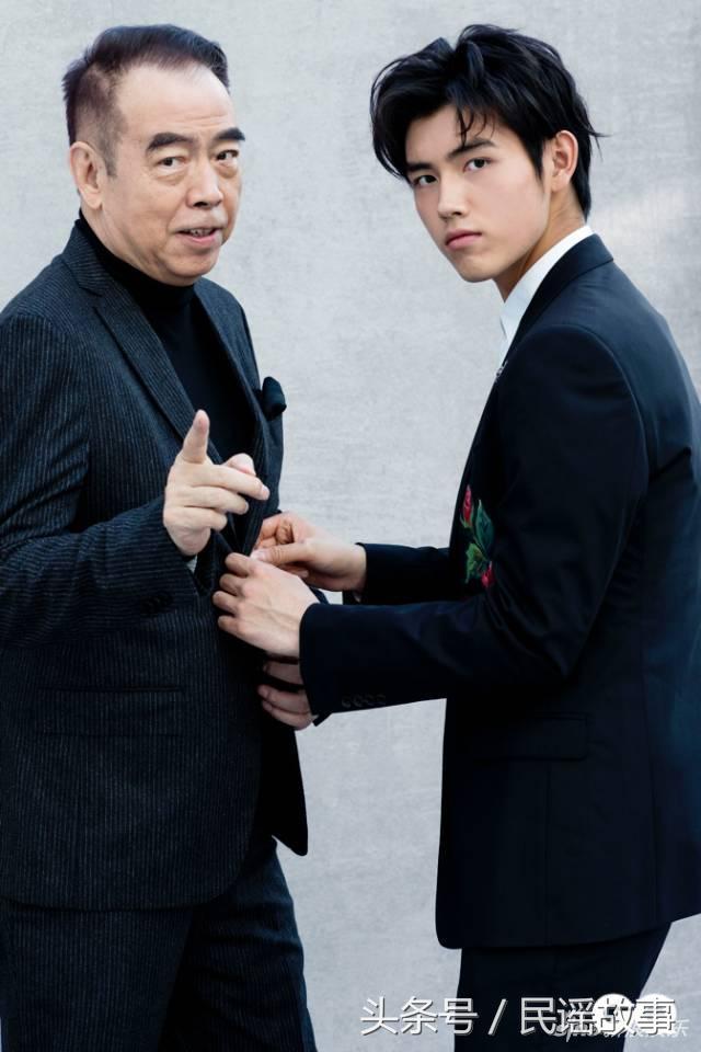 在陈凯歌父子的这组大片中,二人都身着黑色西装,相当有型。17岁的陈飞宇已经有1米88的个头,非常帅气。