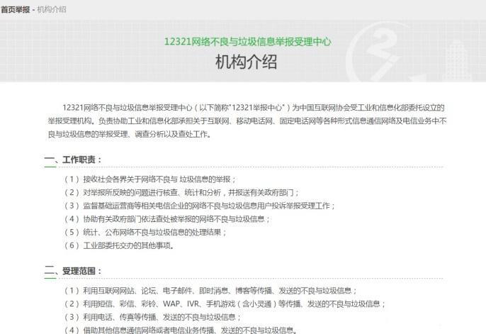 3、12321网络不良与垃圾信息举报受理中心(图5):具体受理范围见图6