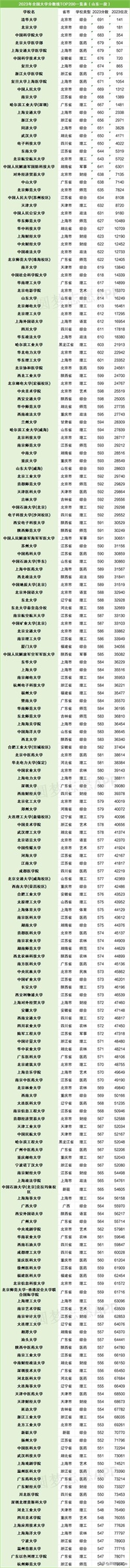 虽然山东不区分文理科,但排在前十的基本是工科实力较强的综合院校或医学部,分数在671-691分之间,相较于文科院校,这类院校无论是在热度上,还是分数上,都会更高一些。