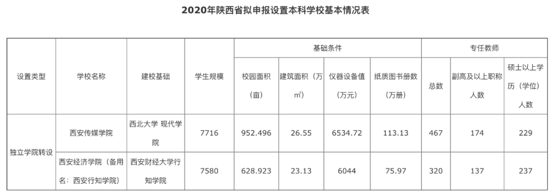 附件2020年陕西省拟申报设置本科学校基本情况表显示,西北大学现代学院将转设为西安传媒学院。如若转设成功,这将是我国第10所传媒院校。