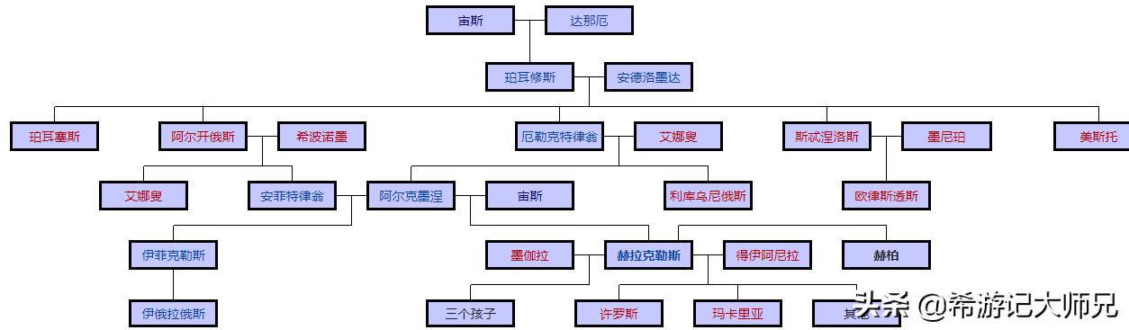 这是一张宙斯的关系图-赫柏在右下