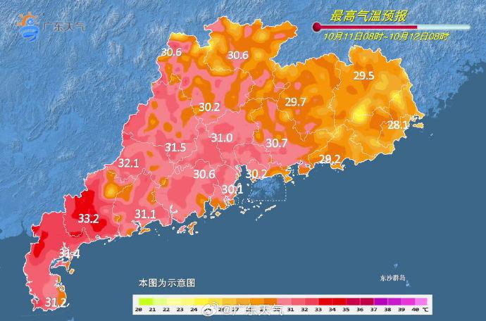 11 日,广东晴到多云。早晨最低气温:粤北和肇庆市县 18~21 ℃,其余市县 21~25 ℃。