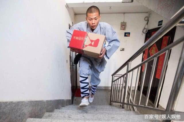 功夫小子也配合着摄影师摆出武术姿势拍照,动作英姿飒爽,手里还拿着一个快递,看上去莫名的契合。看来,学功夫的人也要跟紧时代的潮流啊。