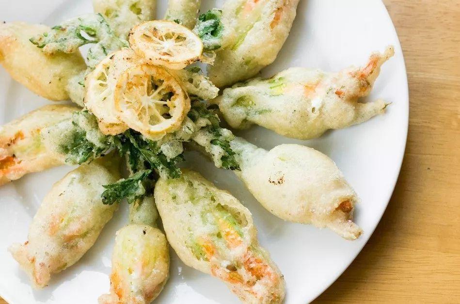 凡是在意大利托斯卡纳区品尝过这道油炸节瓜花的游客,都会深深地爱上这道佳肴。制作这道菜肴时,先用调味后的乳清干酪或马苏里拉奶酪填充嫩黄色的节瓜花,并像制作天麸罗那样将一种面糊浇在花上,接着在橄榄油中炸熟。节瓜花清甜酥脆,入口即化,烹制后须立刻食用。