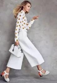 示范搭配:红白斑点衬衫+白色直筒长裤+白色手提包+白色高跟凉鞋