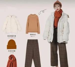 示范搭配:橙色圆领毛衣+黑色长裤+白色外套+橙色帆布鞋+橙色帽子+橙色围巾