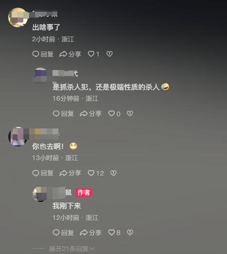 在某社交平台,有网友发布视频,当地村民手持棍棒,整装待发。有人晒出了诸暨公安上述《悬赏通告》,也有知情人在评论区评论:" 是抓杀人犯,还是极端性质的杀人。"