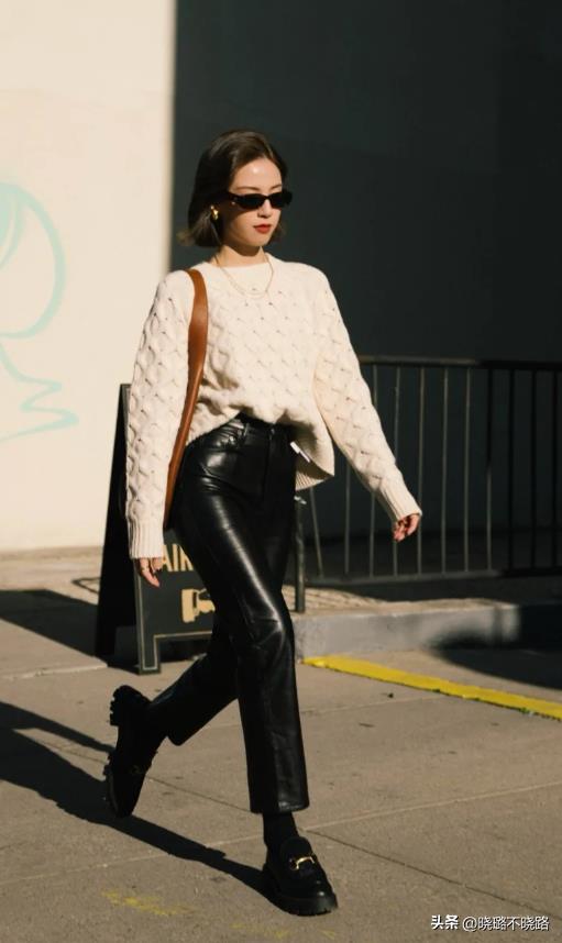 ㊀ 黑色系皮裤,最经典的“黑白配”