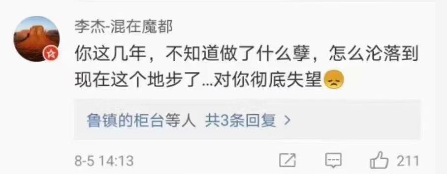 她曾经的粉丝则表示恨铁不成钢,怎么就沦落到这个地步了。