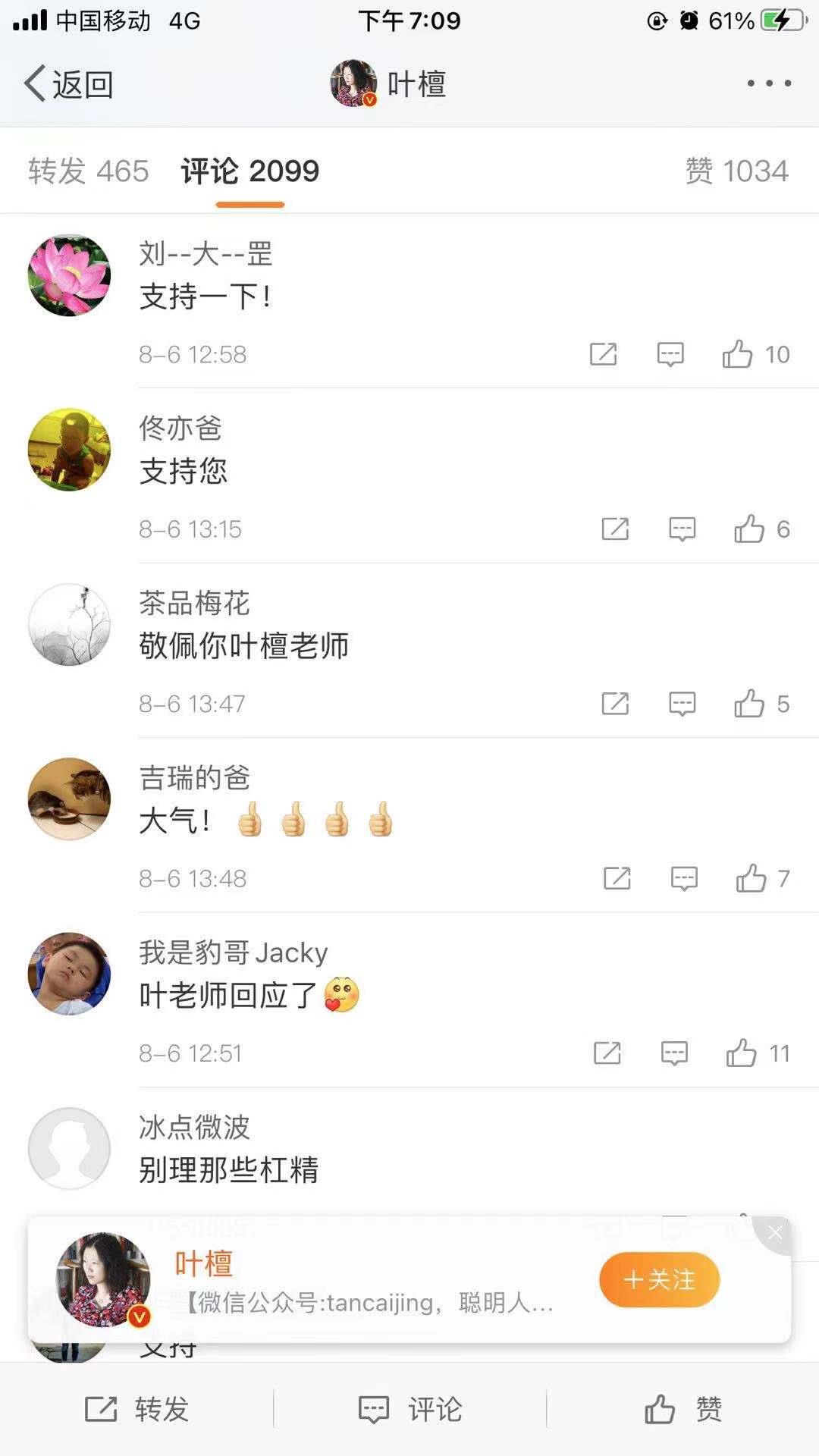 可以看出,这次叶檀的担罪论得罪了很多网友,让他们表示不爽,这是其中一个不爽的理由。