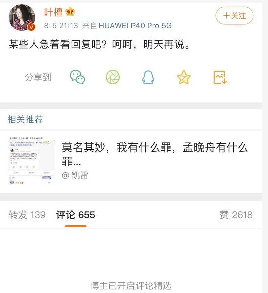 只能说,叶檀太高看自己了,丝毫没有顾及他人的感受,把话说得太满,又动不动代表其他人,结果彻底栽了,现在都不知道怎么圆场了。