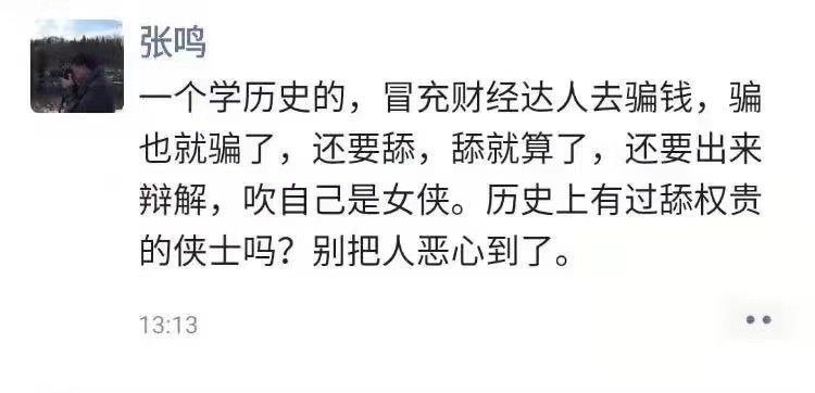 群情汹汹之下,连人大教授张鸣都忍不住出来嘲讽叶檀了。