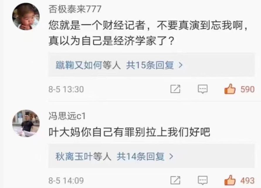 这就是叶檀当下的处境,一个话没说好,结果这两天一直被网友穷追猛打中,估计真的要成为江湖笑柄了。