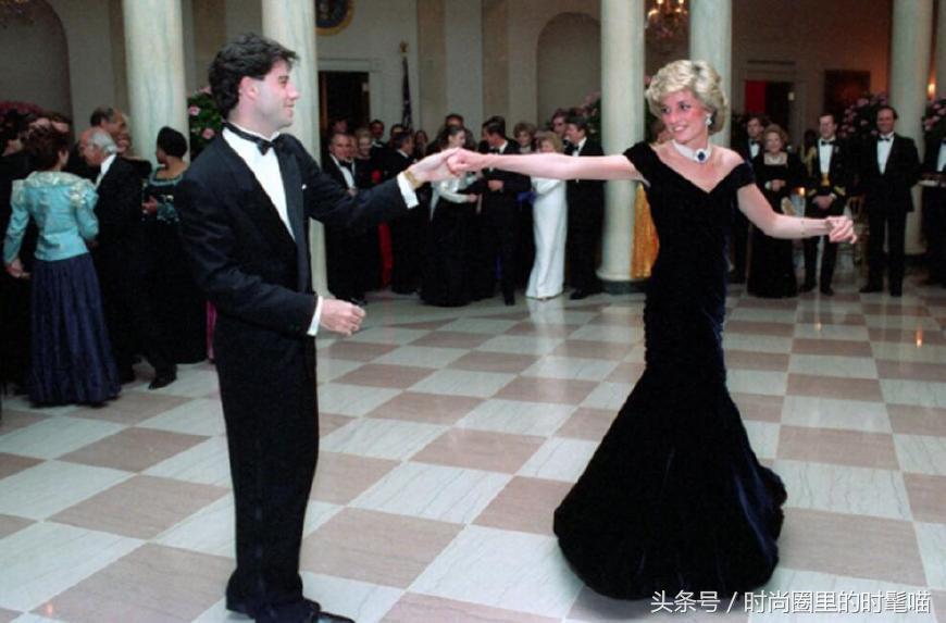 这件号称“特拉沃尔塔连衣裙”的黑色天鹅绒礼服是戴安娜王妃在1985年白宫晚宴上所穿,优雅、大方的天鹅绒连衣裙礼服非常显高贵,大V领设计更是增加了几分性感;不管从设计还是材质都是非常高贵;这件连衣裙曾经被拍卖过2次,1997年一位女商人以17万美元价格拍到,后来这件礼服又在2011年以34万元价格拍卖给另一位新老板。