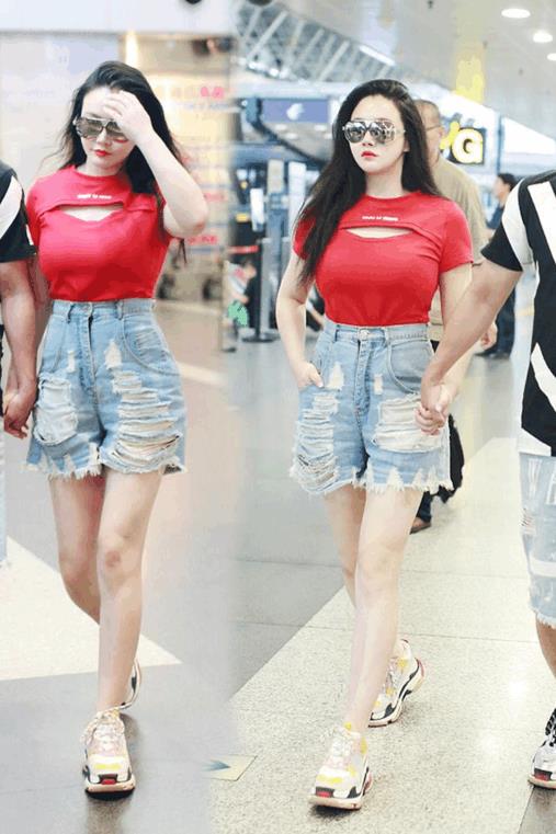 这样破烂的牛仔裤也就只有这对夫妻能够穿得出了,尤其是冉莹颖,很窄的裤头硬是穿进去,难怪有网友说:“勒这么紧不累吗?”窄窄的裤头将冉莹颖的腰围挤的很细,傲人的上围,细小的腰围,这两点很有凹凸的美感。