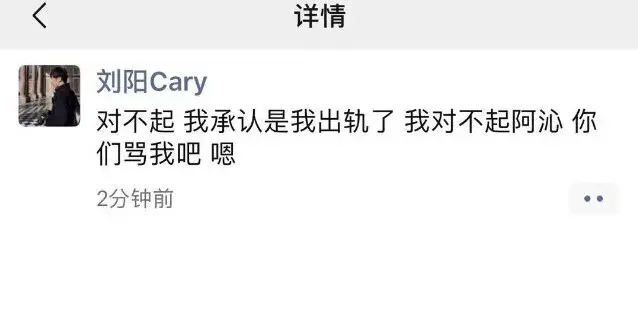 刚刚,刘阳发朋友圈回应#阿沁刘阳分手# 一事,承认自己出轨:“对不起 我承认是我出轨了 我对不起阿沁 你们骂我吧 嗯” 。 这回应更叫人气愤,正如一拳打在棉花上!
