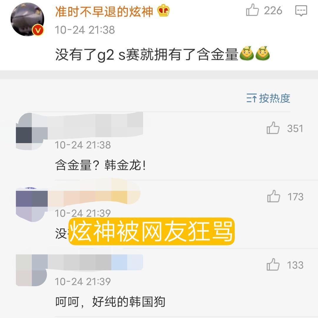 比赛结束炫神发博嘲讽G2终于输了,网友怒喷:你个韩金龙?