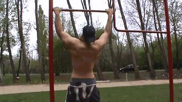 首先,我们用有效的方式上去,有一种方式,很不费力,而且做了一个后你就想再做第二个,这个方法就是人们俗称的“荡“。其实这个方法很简单,就是一开始先把小腹往前顶,然后屁股再往后顶,这样就有一个往上的力,你用这个力直接上去一个很轻松。之后你往下的时候小腹再往前顶,然后屁股再顶,就又有一个力让你上去了,如此循环。