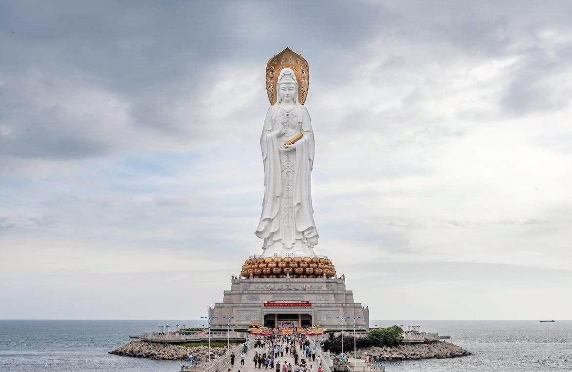 三亚著名地标海上观音像,高108米重2600吨造价8亿,建成后极其壮观。