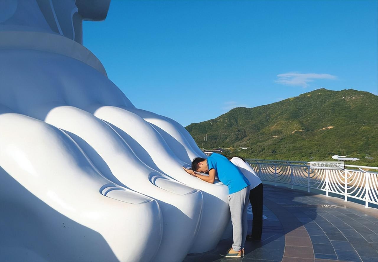 南海观音像值得打卡的地方也有不少,有人会绕着走上一圈,也有人会亲自抱抱“佛脚”,还有人会到观音像四周的景点逛逛,总之来南山旅游对每个人来说都是一段难忘的经历。
