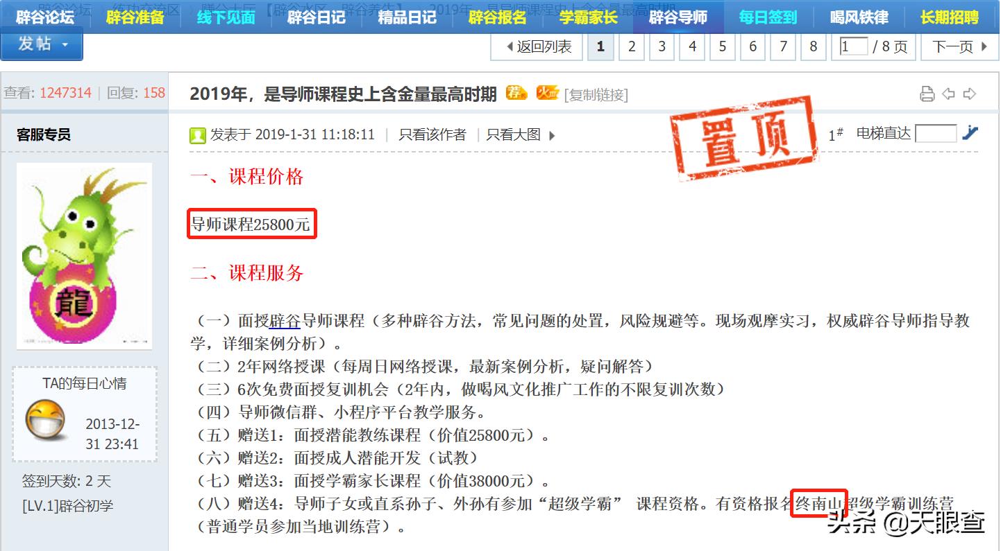 而在此公司组织的所谓线下见面会中,天眼妹发现,参加见面会的人群,大都为中老年用户群体,而在该公司宣传的“喝风辟谷”达到养生、治病的同时,这家公司还提供了专门的辟谷导师,有些课程的费用高达25800元。
