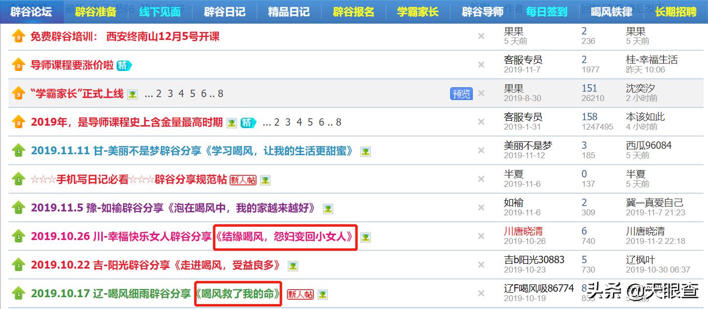 “免费辟谷”、“喝风论坛”几个荒唐的字眼就挂在了论坛的首页