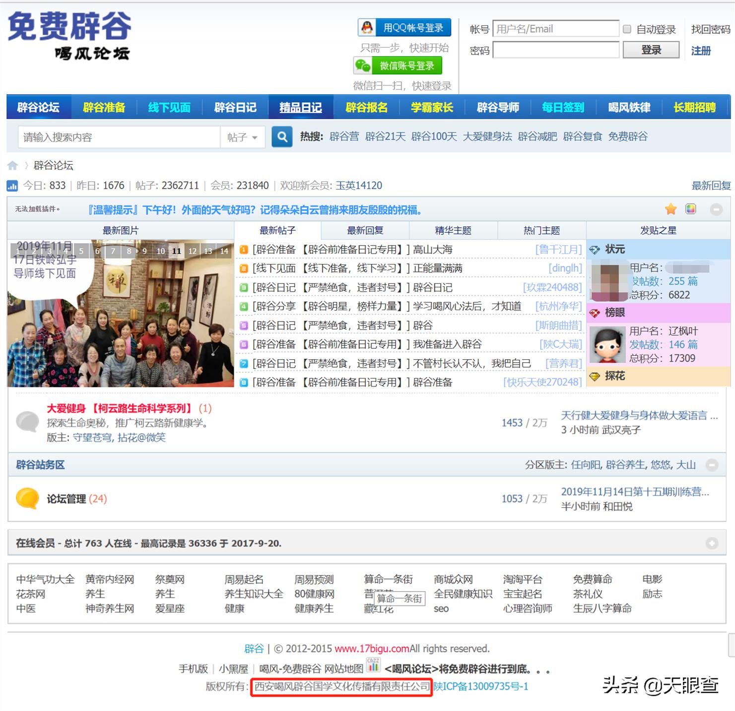 天眼妹搜索到了该公司专门宣传“喝风辟谷”的论坛。一股廉价、粗制滥造的风格扑面而来,但即使这样,这个论坛在11月20日下午,已经新增了833条帖文。