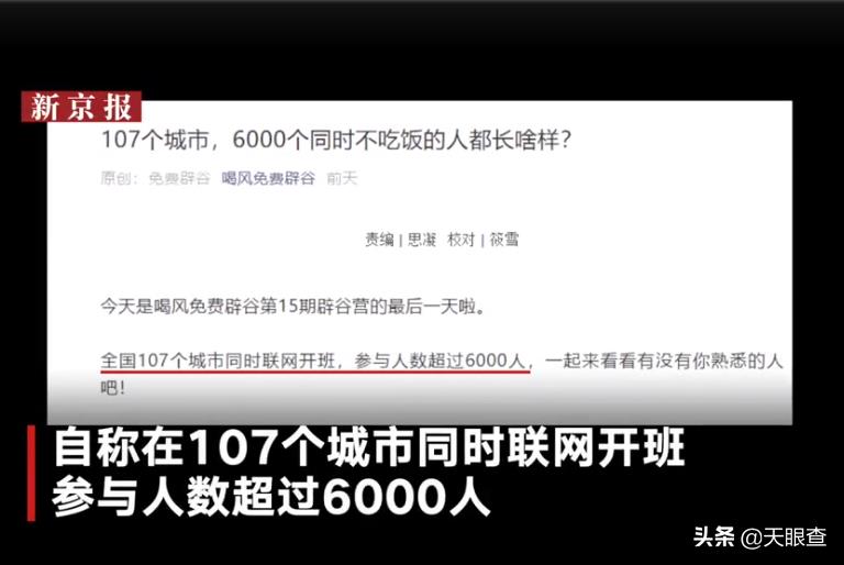 天眼妹发现,这家公司手伸的还真挺长,在许多城市建立“辟谷营”。据新京报报道,该公司自称在107个城市联网开班,参与人数达到了6000人。