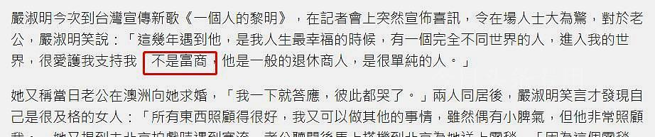 时间流转,生活继续。在经历过一段时间的独处之后,严淑明遇到了她的真爱。在一次公开活动中,她破天荒地晒出了自己的大钻戒,并高兴地宣布了她已经结婚的消息。她的丈夫是一个已经退休的商人,是一个纯真、淳朴的人。