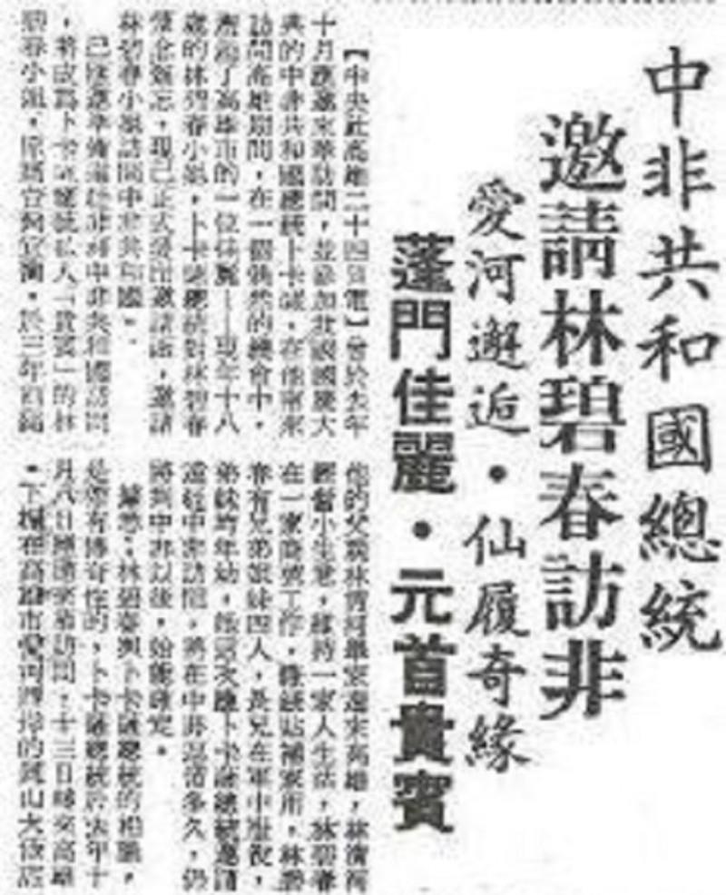 博卡萨回到非洲之后,更是向林碧春提出邀请,邀请她前往非洲游玩。