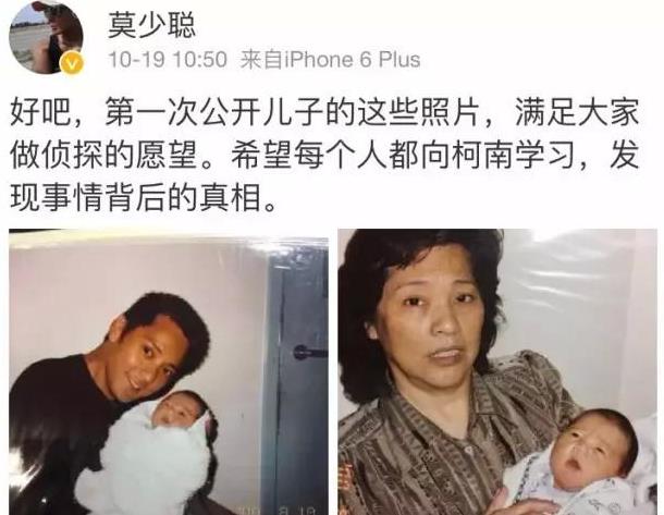 其中缘由我们不得而知,不过曾经相爱的两人却一度剑拔弩张,2016年10月中旬,莫少聪突然晒出了两张儿子幼年的照片,不过配文却意义不明,让人觉得是在射影洪欣,意味颇深。