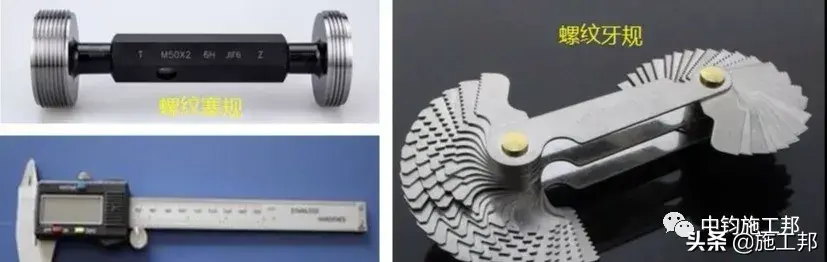 重要尺寸(外径、长度)及螺纹牙型、精度应经检验符合厂家产品设计图纸要求。内螺纹用专用的螺纹塞规检验,其塞通规应能顺利旋入,塞规旋入长度不得超过3P(P为一个螺距长度)。