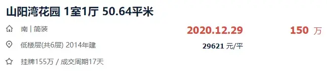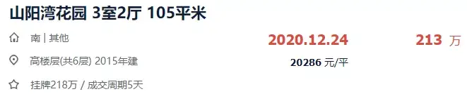 山阳湾花园惊现砸盘侠,成交单价创近两年新低!