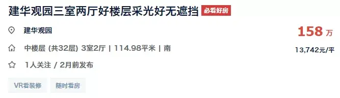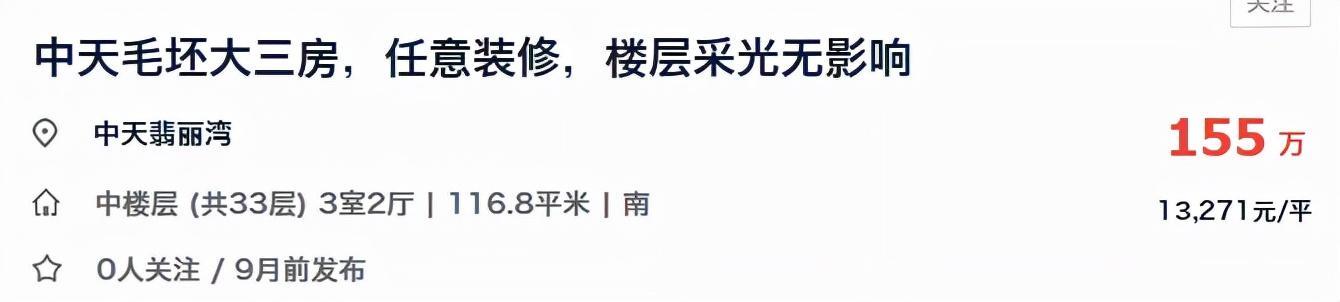 ③中天翡丽湾,116.8㎡三房户型,单价仅1.33万/㎡,9个月前发布,比市场价要低。
