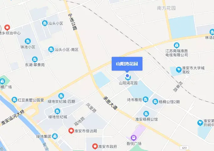 山阳湾花园位于淮安生态新城枚皋中路89号,靠近有轨电车1号线森林公园站,周边有森林公园、沁春路幼儿园、沁春路小学、第二开明中学等成熟配套。小区对面就是吾悦广场,一站式满足餐饮、购物、娱乐的需求。