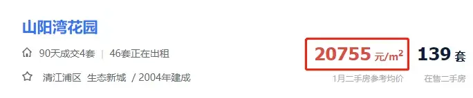 前两年行情好,生态新城房价整体普涨,所以山阳湾花园房价近年来一路走高,成交价基本都在2万/㎡以上,如今成交价降至13787元/㎡,确实令人感到意外。