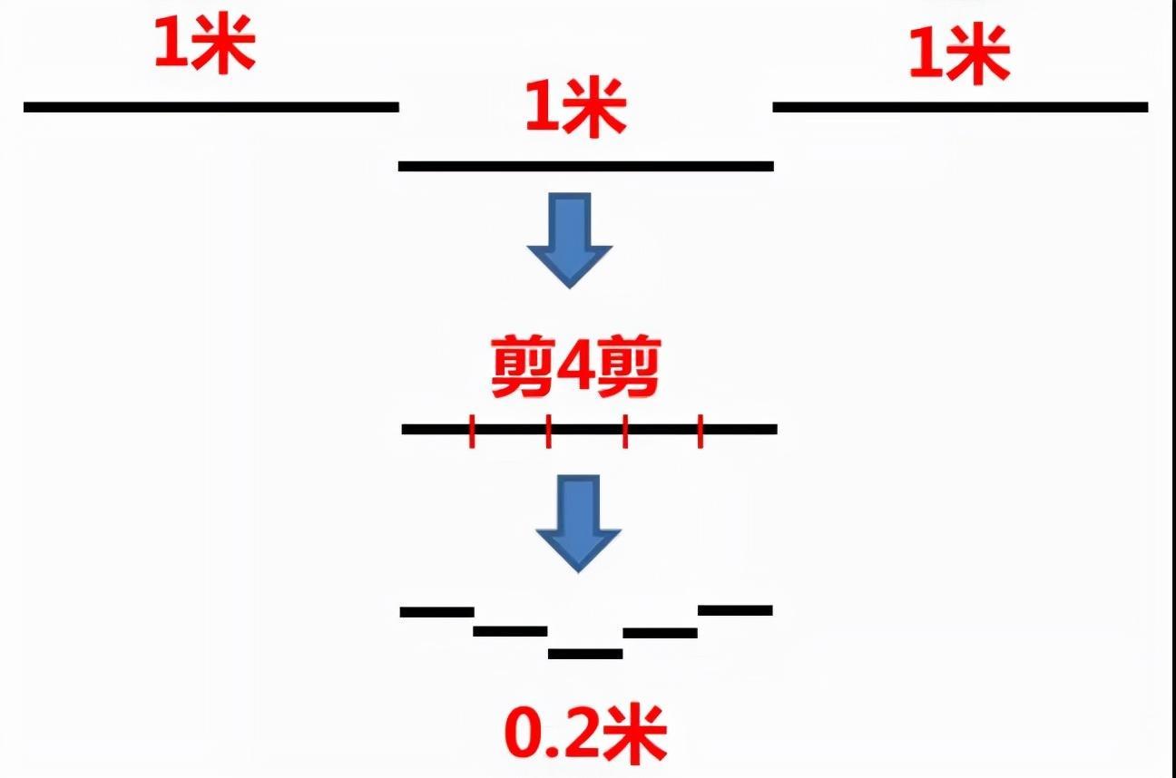 再把1米的钢筋,裁成0.2米一段,需要裁几剪?计算模型如图2所示。