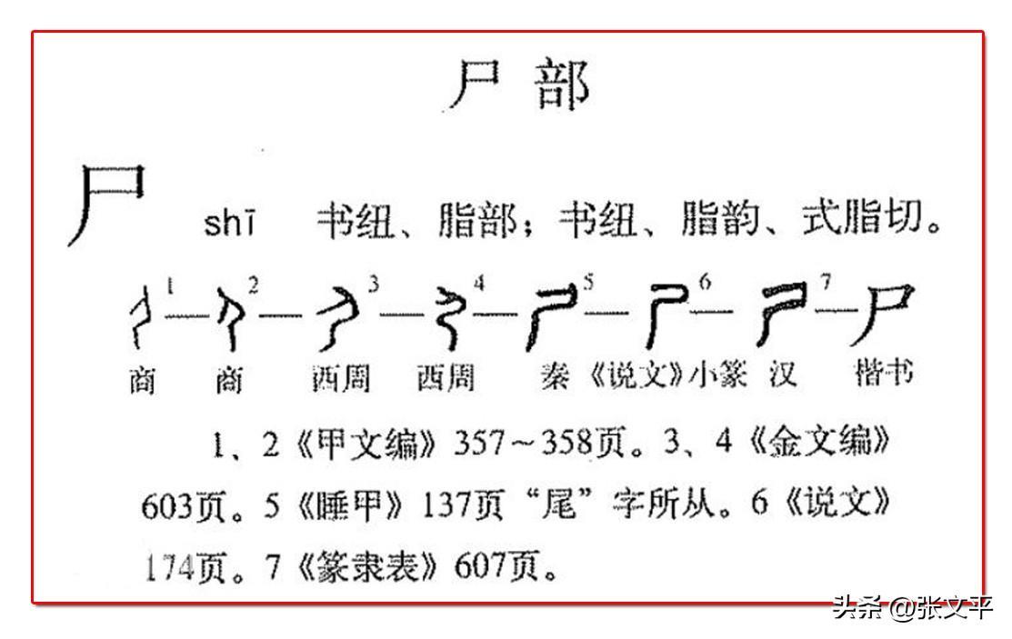 口(字形见上图),从口从尸。尸,甲骨文像屈膝而坐的人形。口,即“尾下窍”。“尸”与“口”形成合体字,则表明“人体尾下窍”,即肛门。