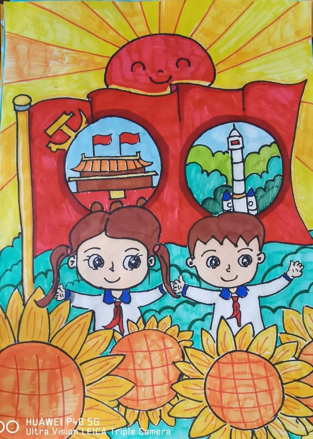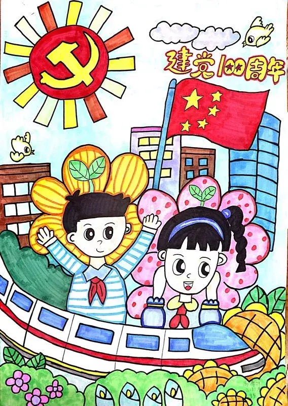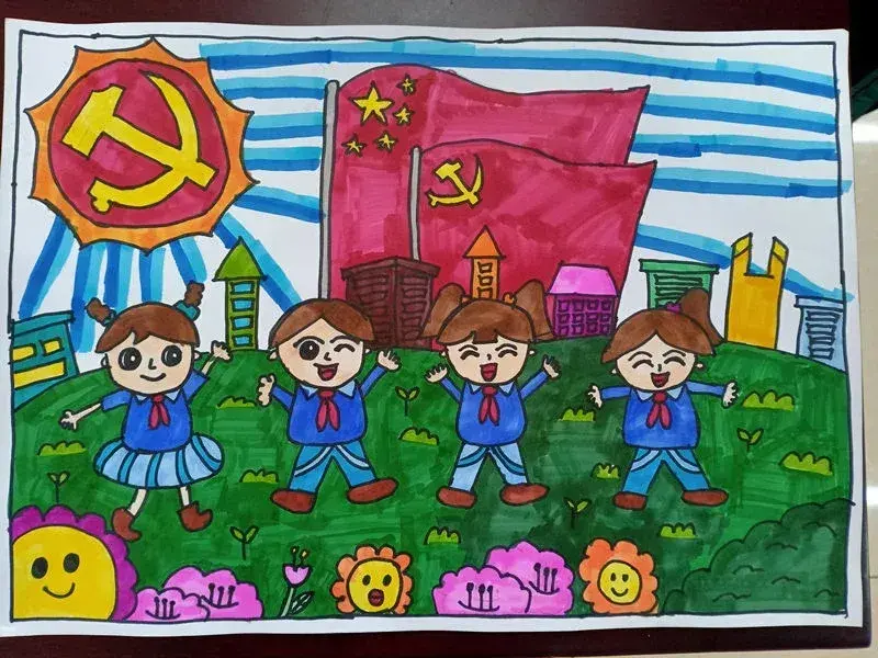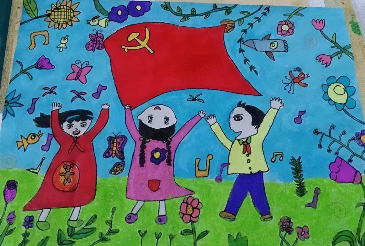 少先队员们的作品热情饱满,精神昂扬,绘画内容充分表达出了他们沐浴党的阳光、幸福健康成长的精神风貌,以及他们祝福党的生日的美好心声,表现出广大少年儿童对幸福生活的热爱,以及爱党、爱国、爱家的情怀。