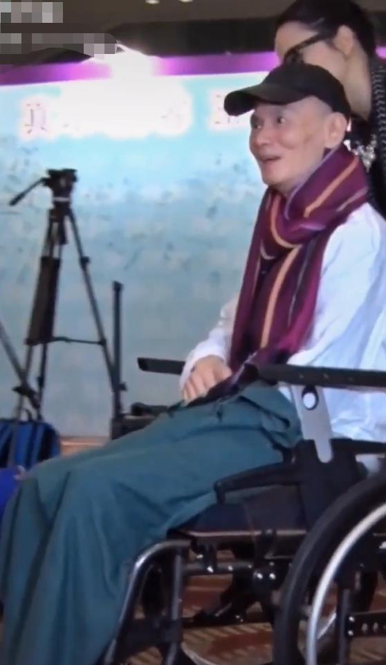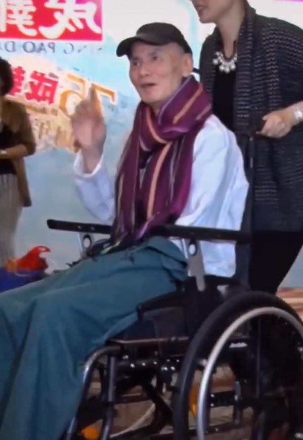 由于中风而半身不遂的他坐在轮椅上,被工作人员缓缓推出,见到有人在看自己,他还亲切的向众人打着招呼。