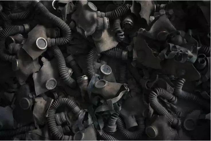 在那里可以看到的包括学校食堂地板上废弃的防毒面具