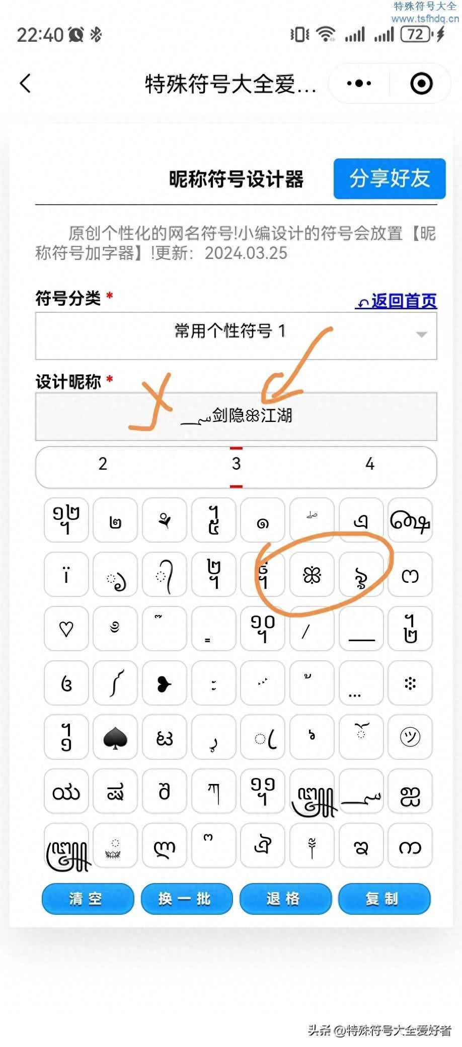 总结:༐剑༏隐࿙ꕥ࿚江༏湖༐,这个符号是比较简单容易的,因为我们只要寻找2类符号就可以快速实现了。我们在设计网名符号的时候,种类越式反而越麻烦。小编试过很多种类的网名符号设计。如果没有录制视频,也是很难回来头来看看是怎么设计出来的。如果您喜欢这个网名符号,可以直接复制使用哦!