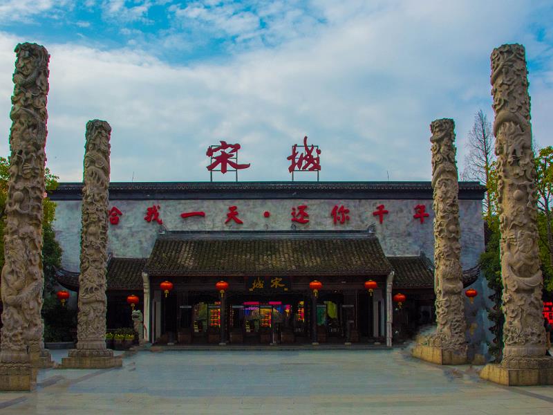 但杭州宋城显然是一个例外,首先这个千年古城就是“假”的,属于现代的仿古作品。论古色,其实不如山东青州宋城的历史悠久,毕竟青州宋城旁边有个青州古城。论影响力,也弱于“隔壁”的横店清明上河图,毕竟人家有明星镇场。但杭州宋城的建造者毅然决然,信心满满,喊出一句“建筑为形,文化为魂”的口号,以表示“古”不“古”其实不重要,然后便红红火火地动工了。
