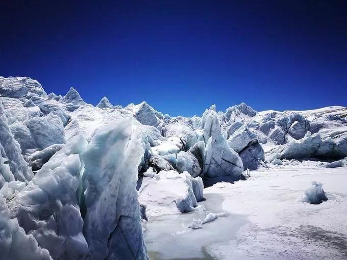 普诺岗日冰川是羌塘保护区的核心地区。海拔在6000~6800米之间,面积约422平方千米,是世界中低纬度的最大冰川,也是继南极、北极之外最大的冰川,被称为“世界第三极”。冰川融水形成了许多姿态各异的冰塔,景色蔚为壮观。