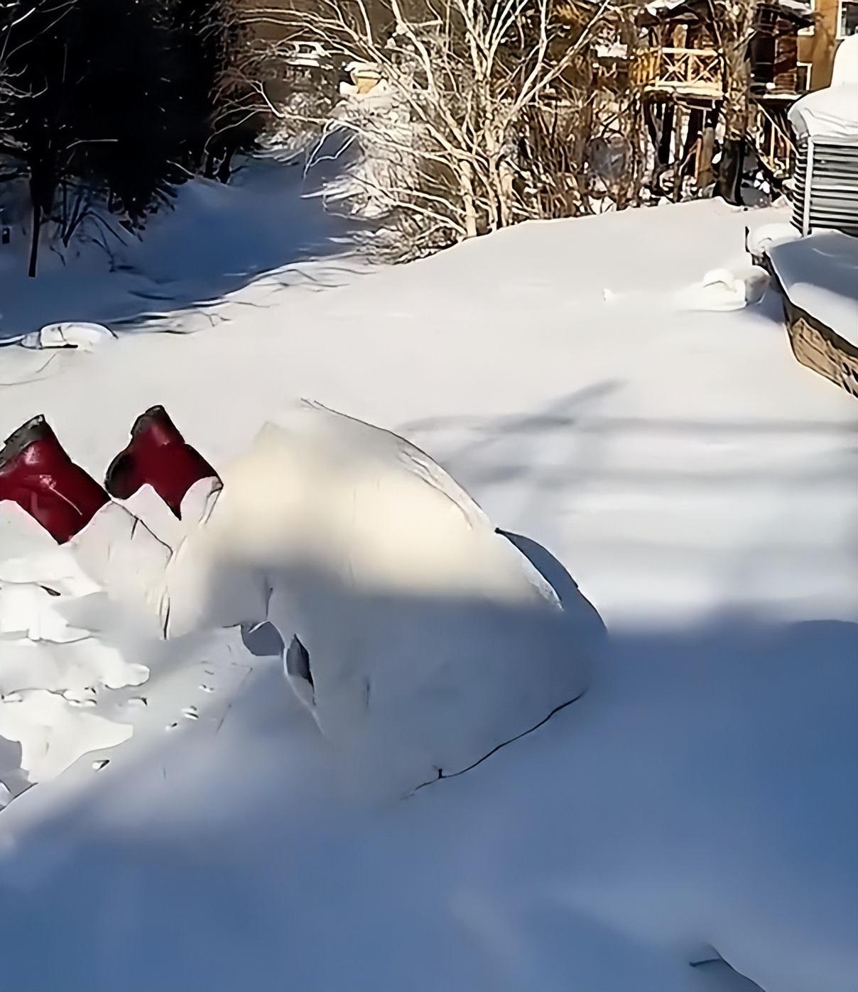 这是真上头了,直接一头栽到雪地里,真把自己当土拨鼠了。