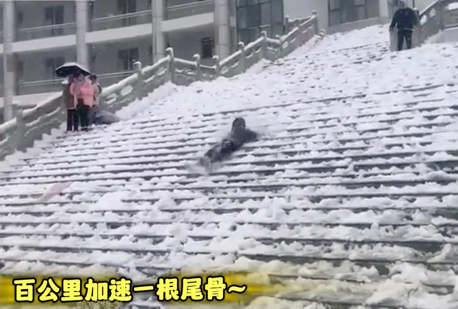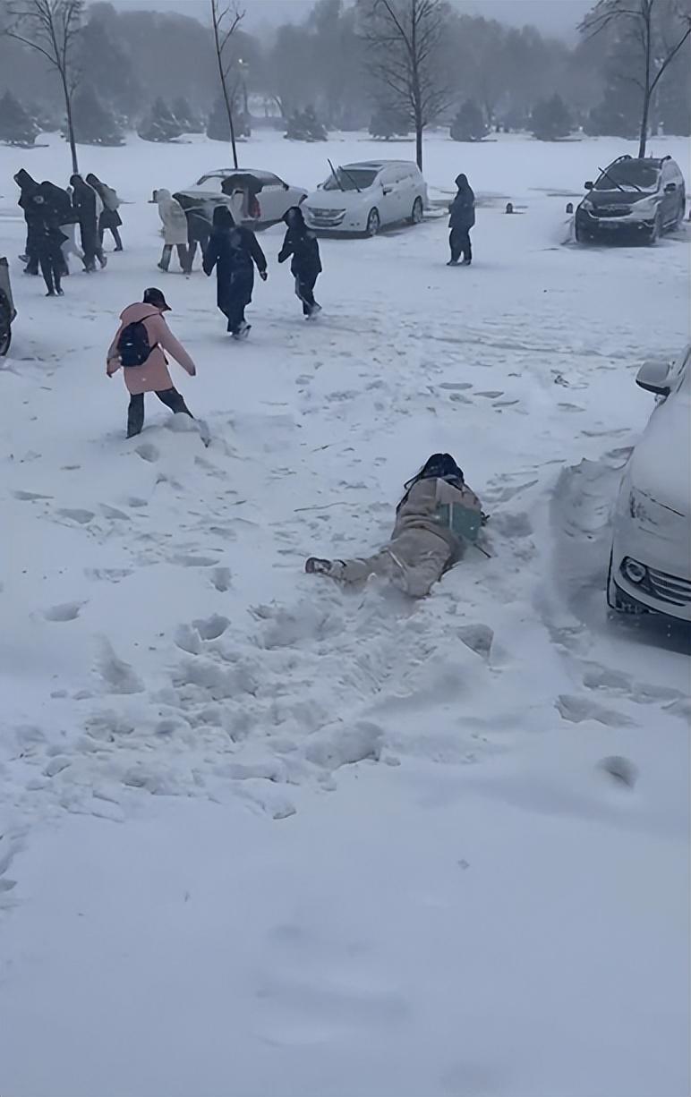 还有这大学生专属“板鸭趴”,看见雪就打滚。