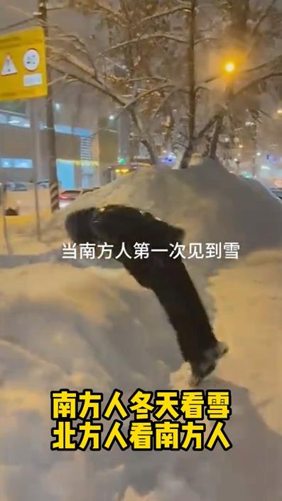 南方人第一次看见雪的迷惑行为,北方人:南方小土豆又出来整活了