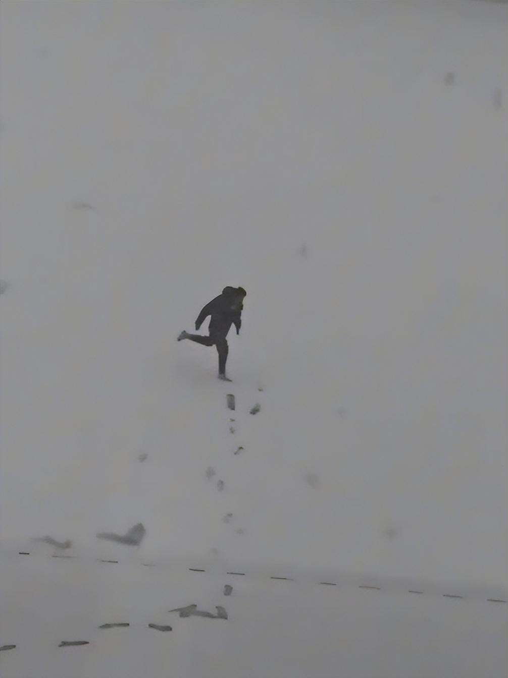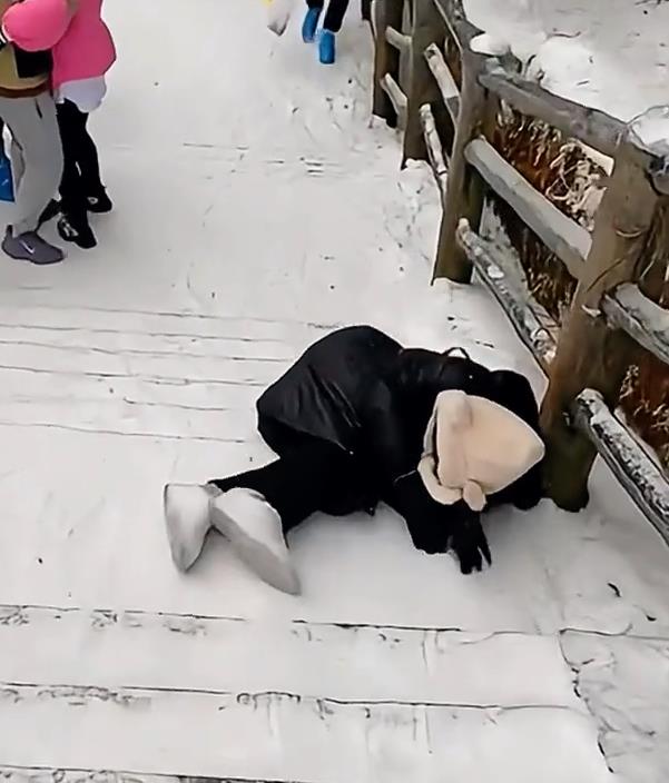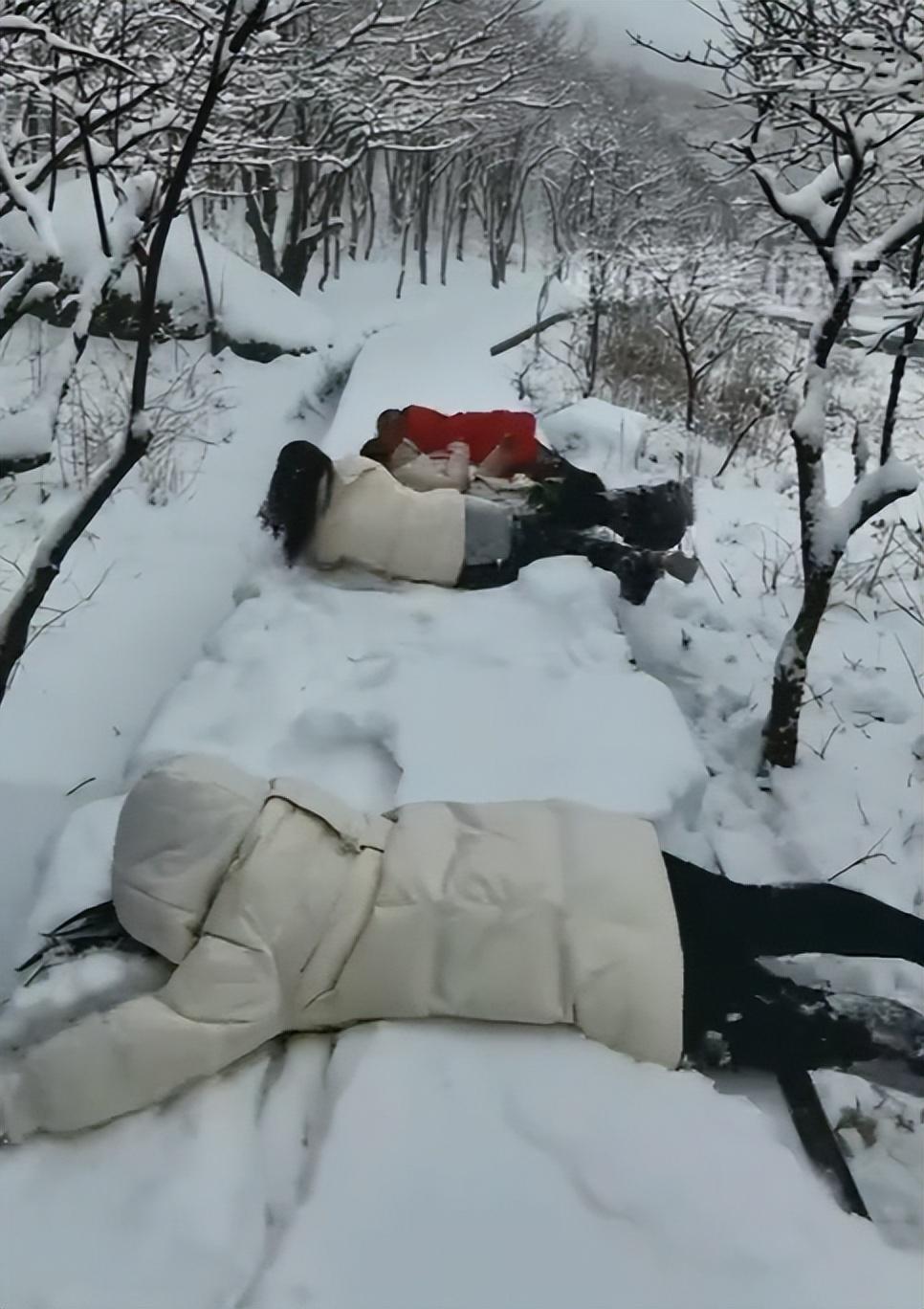 但是还是建议大家不要模仿,谁也不知道雪下面是什么,如果是尖锐的树枝之类的,那就太遭罪了。