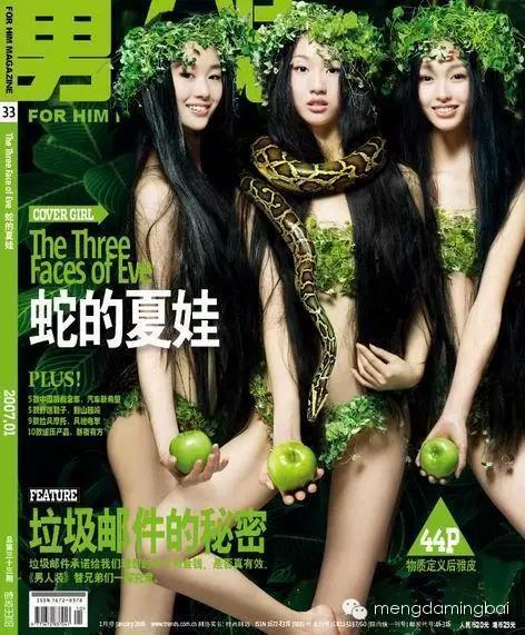 《男人装》有时会用不知名但身材好的模特拍封面,谁知道里面也会出名人呢。最右是唐嫣,把她拍得还怪好看的。